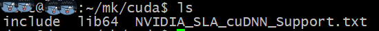그 내부 구조를 보면 include , lib64, cudaDNN에 관련된txt파일 세가지로 구성되어있다.